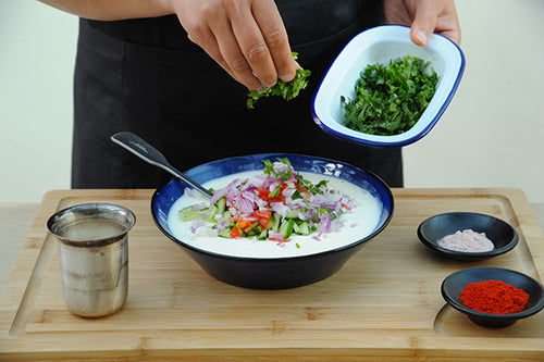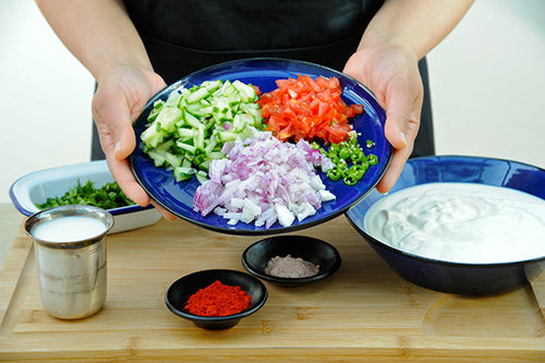 Raita’s are a great side dish and act as a cooling agent with a meal. This raita is a perfect accompaniment to most meat dishes and also goes really well with one pot rice dishes like Biryani!