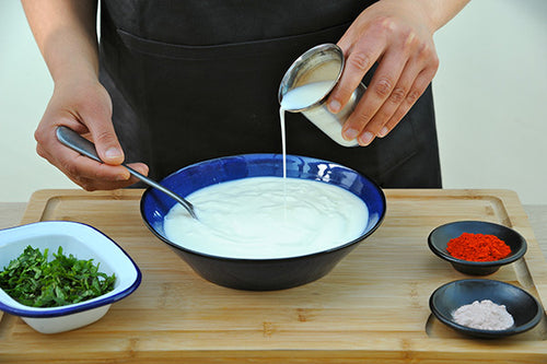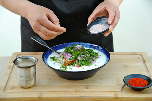 Once all ingredients are mixed in the yogurt add salt to taste.