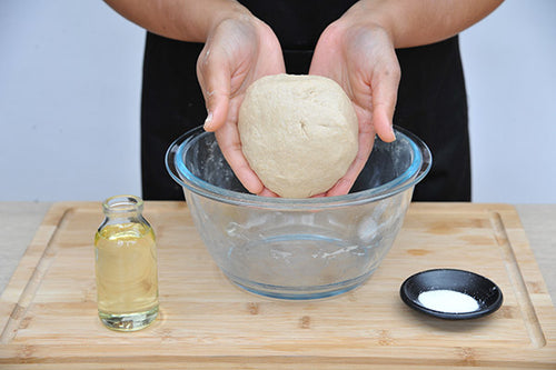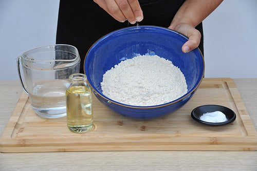 To make the dough, first mix the flour, salt, and oil together in a large bowl.