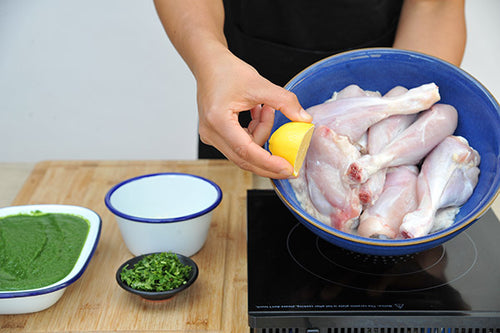Marinate the chicken in lemon juice and salt.