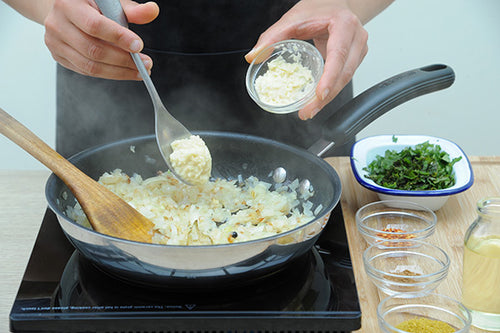Add chopped onions and sauté until light brown. Add ginger-garlic paste and fry for 2-3 minutes.