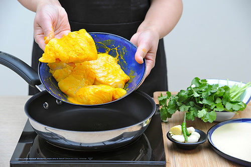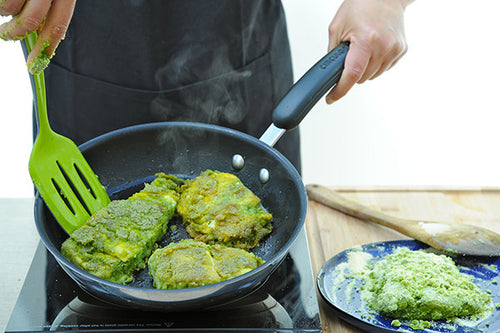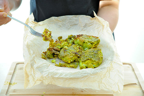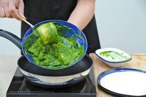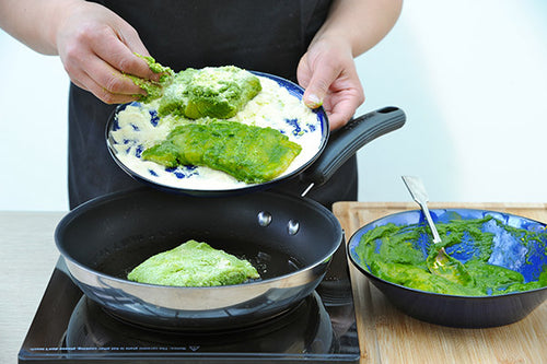 This pan fried fish in a green marinade is a classic dish that hails from the coastal regions of Maharashtra in Western India. The fish is infused in a fresh herb paste marinade and finished with a crust of semolina or rice flour. Perfect accompaniment to steamed rice and dal.