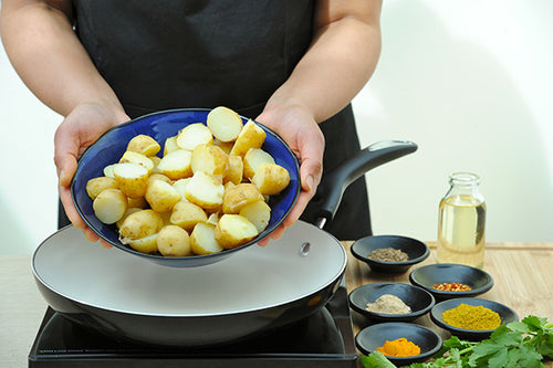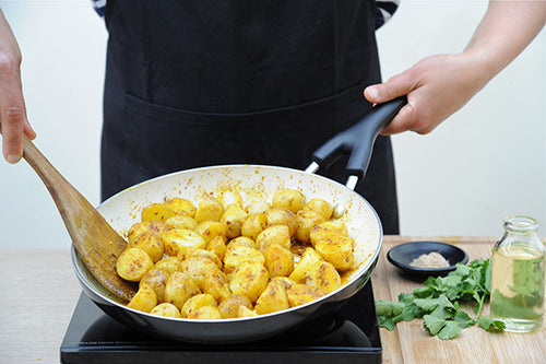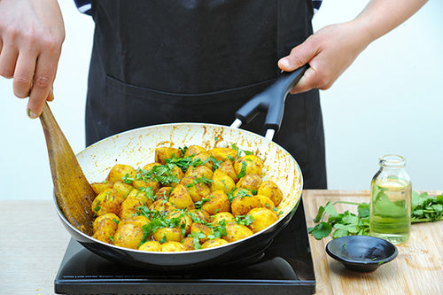 Roasted in a simple assortment of Indian spices these potatoes need absolutely nothing else. This is a perfect earthy dish to balance out a full flavoured curry.