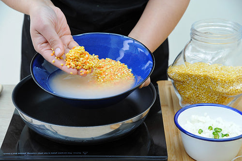 Wash the lentils in a few changes of cold water. Cook the lentils in a pressure cooker or a pan with a lid with 1 litre water, turmeric powder and salt for about 10 -15 minutes or until soft.
