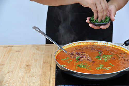A nutritious kidney bean dish that can be enjoyed as the perfect winter comfort food. The beans hold their shape & texture well and lend a nutty flavour to the curry which compliments the flavors of the spices very well.