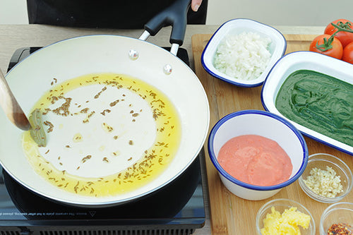 A traditional North Indian dish prepared using paneer (Indian cottage cheese) cooked in fresh spinach gravy along with a simple assortment of spices.