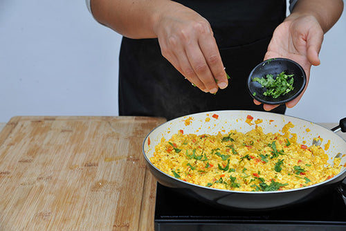 Cook for a few minutes on low heat and serve garnished with finely chopped coriander.